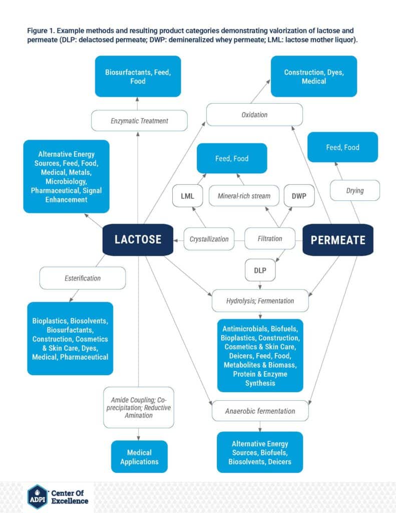 Available at lower cost than many renewable options, lactose and permeates are among the dairy ingredients with expanding potential in numerous industries, with seemingly endless opportunities for valorization. An objective of writing this literature review is to provide scientists from a variety of fields an overview of some applications where lactose and permeates have found use, with hopes to inspire further innovation.